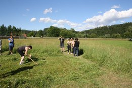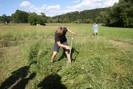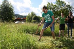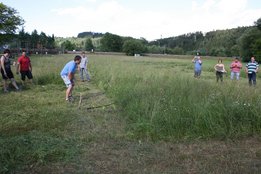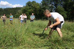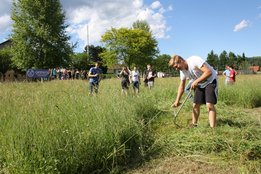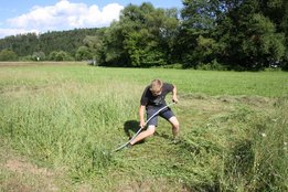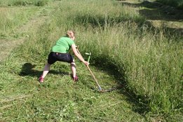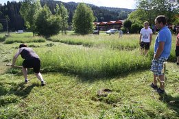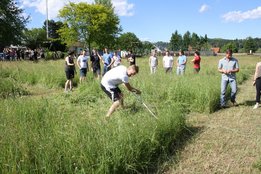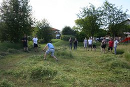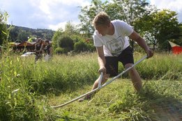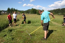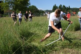 Beim Sensenmähen lautete die Aufgabe, eine 5x5m große Fläche zu mähen. Bewertet wurden dabei die Schnelligkeit und der Schönheitsgrad des gemähten Feldes. Hierbei konnte sich Markus Penz (OG Edelschrott) vor Michael Kohlbacher (OG Gößnitz) und Alexander Neubauer (OG Edelschrott) durchsetzen. Bei den Damen siegt Bezirksleiterin Julia Schröttner von der Ortsgruppe Voitsberg vor Isabella Schilling (OG Edelschrott).