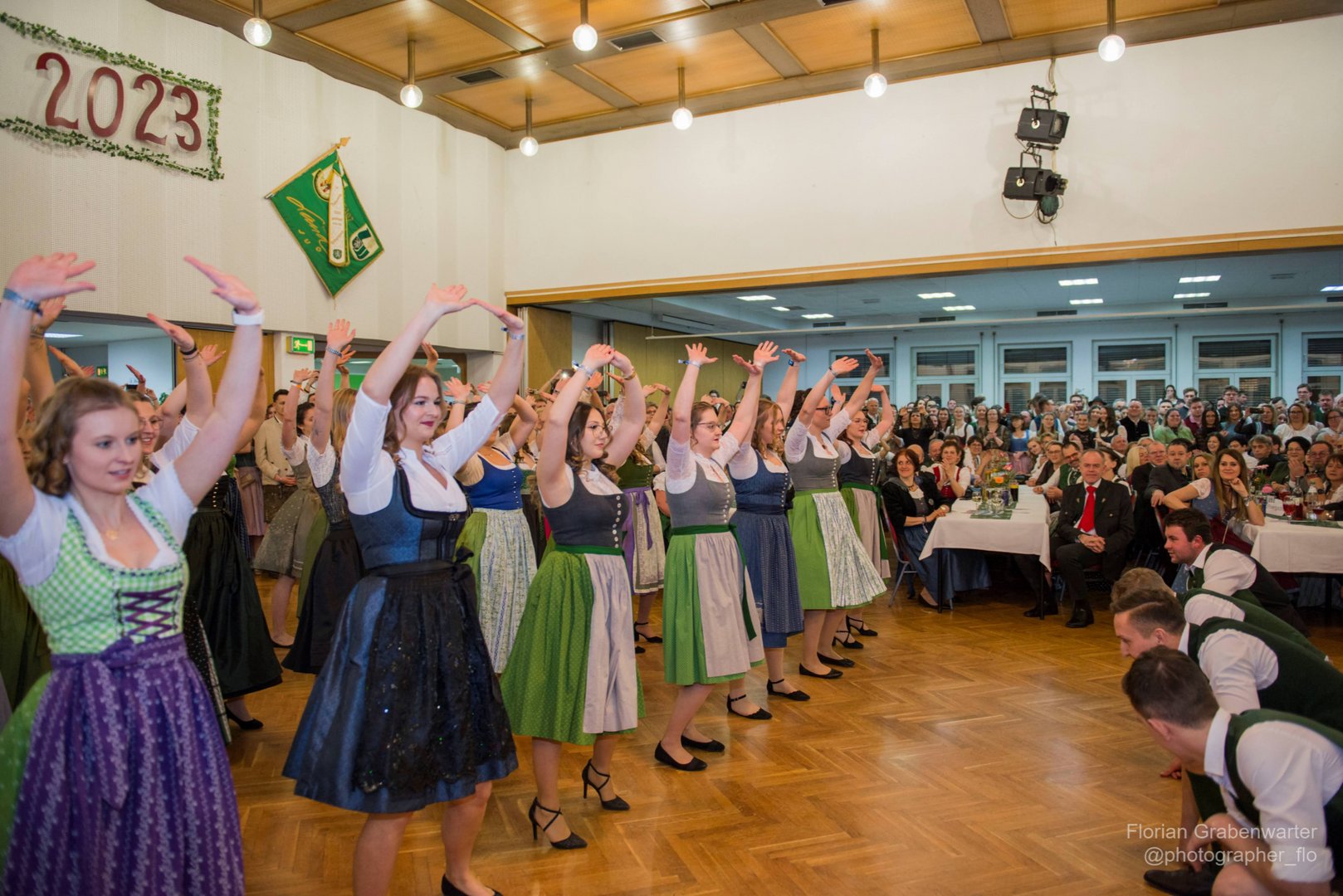 Um 19 Uhr öffnet die Veranstaltungslocation in Köflach ihre Tore. Bereits eine Stunde später beginnen die rund 40 Tanzpaare aus dem Landjugend Bezirk Voitsberg den Auftritt ihrer schwungvollen Polonaise. Schon nach dem erfolgreichen Empfang durch das Obmann- und Leiterinnen-Team steht einem geschichtsträchtigem Ballabend mit den Spatzen 2000 nichts mehr im Wege. Nach ein paar Drehungen auf der Tanzfläche war für die Gäste klar, das offene Volkstanzen durch die Schülcherleitn Musi bringt Jung und Alt zusammen. Aber auch die Lipizzanerheimatschänke in der anliegenden Sporthalle lud mit Musik von Adi M. und Lipiklang für Jedermann zum Verweilen ein. Die Jungen und Junggebliebene finden sich in der bewährten Kellerdisco mit DJ Mexx bis in den frühen Morgenstunden wieder. Der Landjugend Bezirksvorstand Voitsberg freut sich, wieder viele Gäste im Volksheim begrüßt haben zu dürfen. Zudem liegt es ihm am Herzen, ein großes Dankeschön an alle unterstützenden Mitglieder aus den Ortsgruppen, sowie allen Familienmitgliedern, Freunden und ehemaligen Funktionär:innen auszusprechen. Ein weiteres Paradebeispiel, welches unser Vereinsmotto unterstreicht: Landjugend hält zusammen!