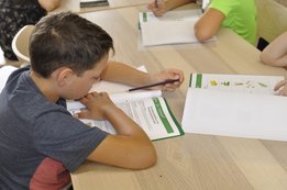 Nach dem Eintreffen der Kinder wurde erstmals in den vom Bezirksvorstand zur Verfügung gestellten Mappen gearbeitet. Jede:r Naturforscher:in bekam eine umfangreiche Teilnehmermappe. Darin befinden sich auf 48 Seiten nützliche Tipps, Infos und Rätsel rund um das Thema Natur, Wald und Wild aber auch Malvorlagen und eine Herbariumvorlage. Vor allem die Schwerpunkte Kräuter, Fische, Insekten, Wildtiere, (Beiz-)Jagd, Wald, Bäume, Rezepte sowie der beschriebene Weg vom Wald zur erneuerbaren Energie wurden in der „TN-Mappe“ näher behandelt.